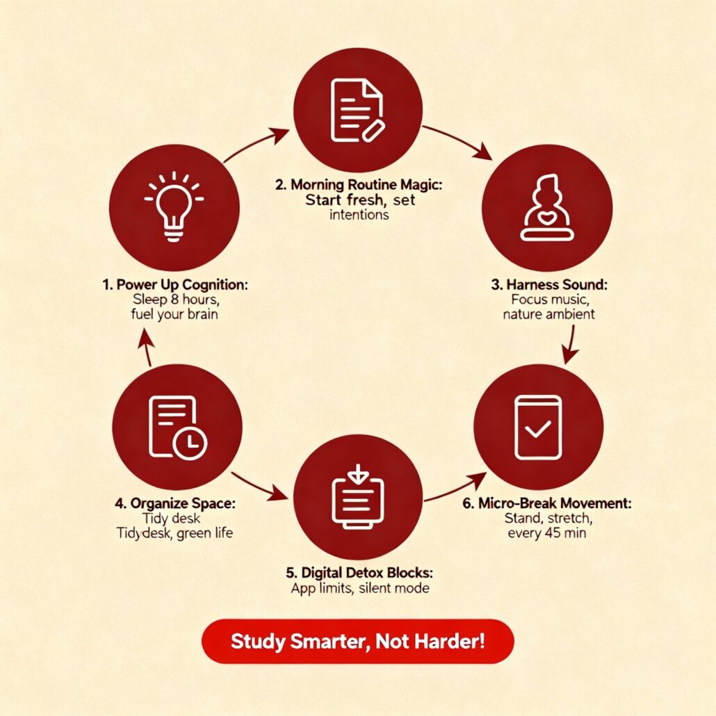 Learning how to improve concentration and focus while studying isn’t about forcing yourself to sit for hours. It’s about aligning your habits with how your brain naturally functions.